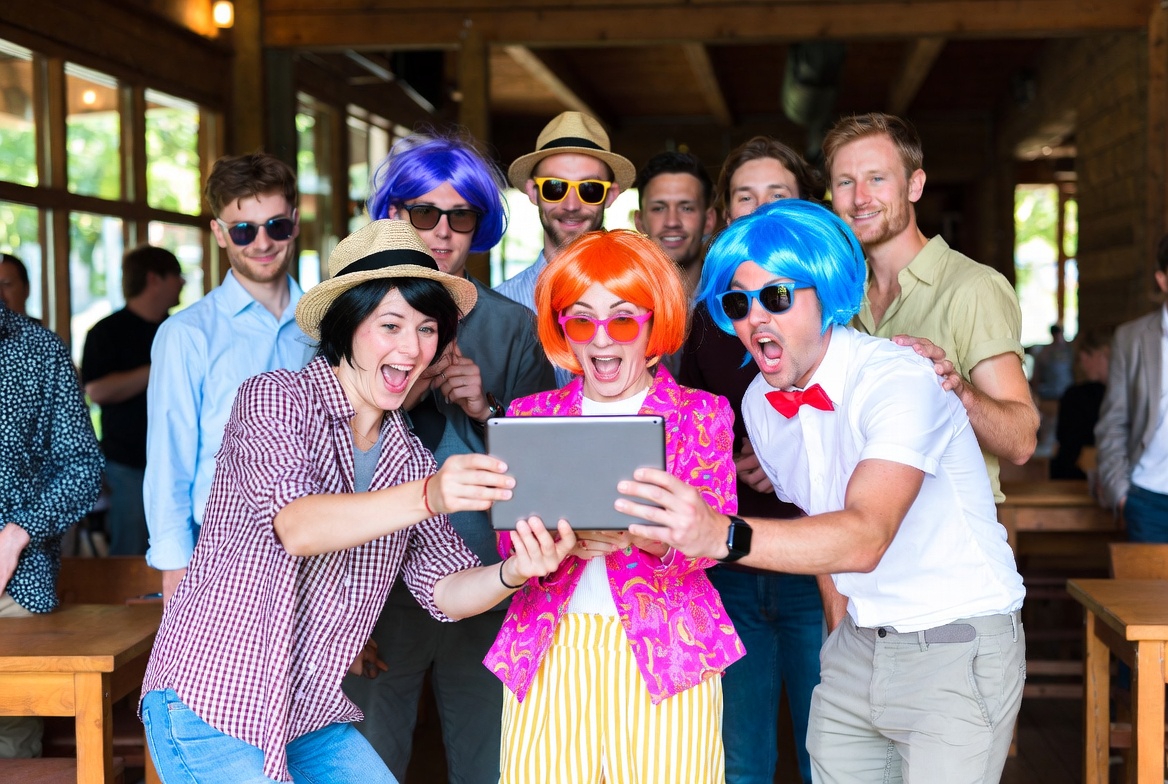 Ni blir uppdelade i olika team. Varje team får en surfplatta med video, ett tema, ett antal kända rollkaraktärer och utklädningskläder.